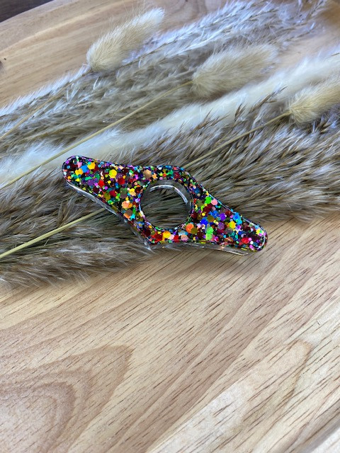 Cet accessoire de lecture transparent est orné de paillettes multicolores scintillantes, ajoutant une touche d'élégance à votre moment de lecture.
