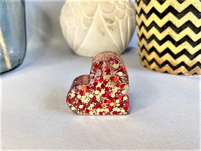 Ajoutez une touche de romantisme et de glamour à votre décoration intérieure avec notre porte-photo en résine en forme de cœur. Ce superbe porte-photo est fabriqué à partir de résine durable et est transparente avec des feuilles et des paillettes rouges et dorées pour un look vraiment accrocheur.