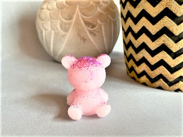 Cette figurine rose avec des paillettes roses et violettes apportera une touche de couleur et de gaieté à n'importe quelle pièce. Parfait pour la chambre d'un enfant, une étagère de salon, ou même comme cadeau pour un amateur d'ours.