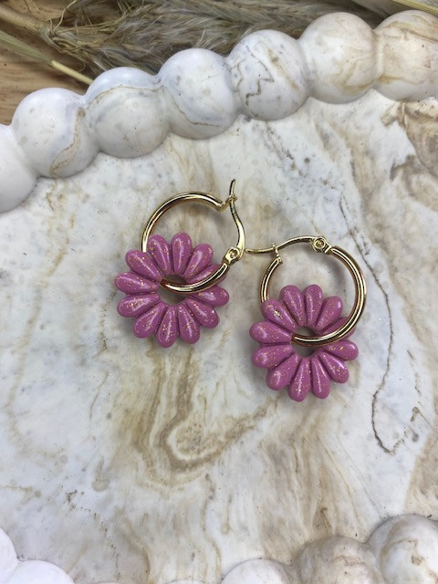 Pampilles Elsa rose et dorée en pâte polymère