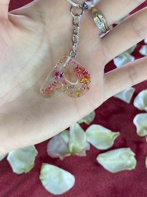 Ce superbe porte-clés présente un design transparent rempli de délicates paillettes roses et dorées, créant un look élégant et accrocheur. L'élégant « P » ajoute une touche personnelle, ce qui en fait l'accessoire parfait pour vos clés ou votre sac à main.