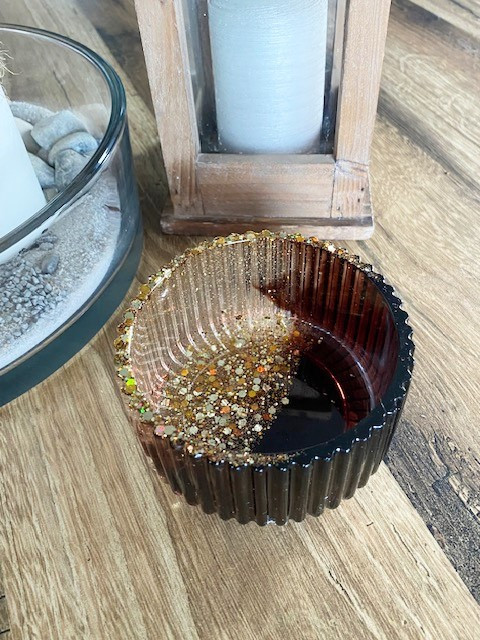 Découvrez notre superbe Pot en résine « Charlotte » pour ranger toutes vos petites choses avec style! 😍 Ce pot marron et transparent est orné de paillettes dorées qui lui donnent une touche de glamour irrésistible. Parfait pour ranger vos accessoires de beauté, vos crayons ou tout autre objet de bureau. Sa taille compacte en fait une pièce polyvalente qui s'intègrera facilement à n'importe quel espace. Ajoutez une touche d'élégance à votre décoration avec ce pot en résine pratique et esthétique. Magasinez dès maintenant sur notre boutique en ligne française d'objets déco en résine!